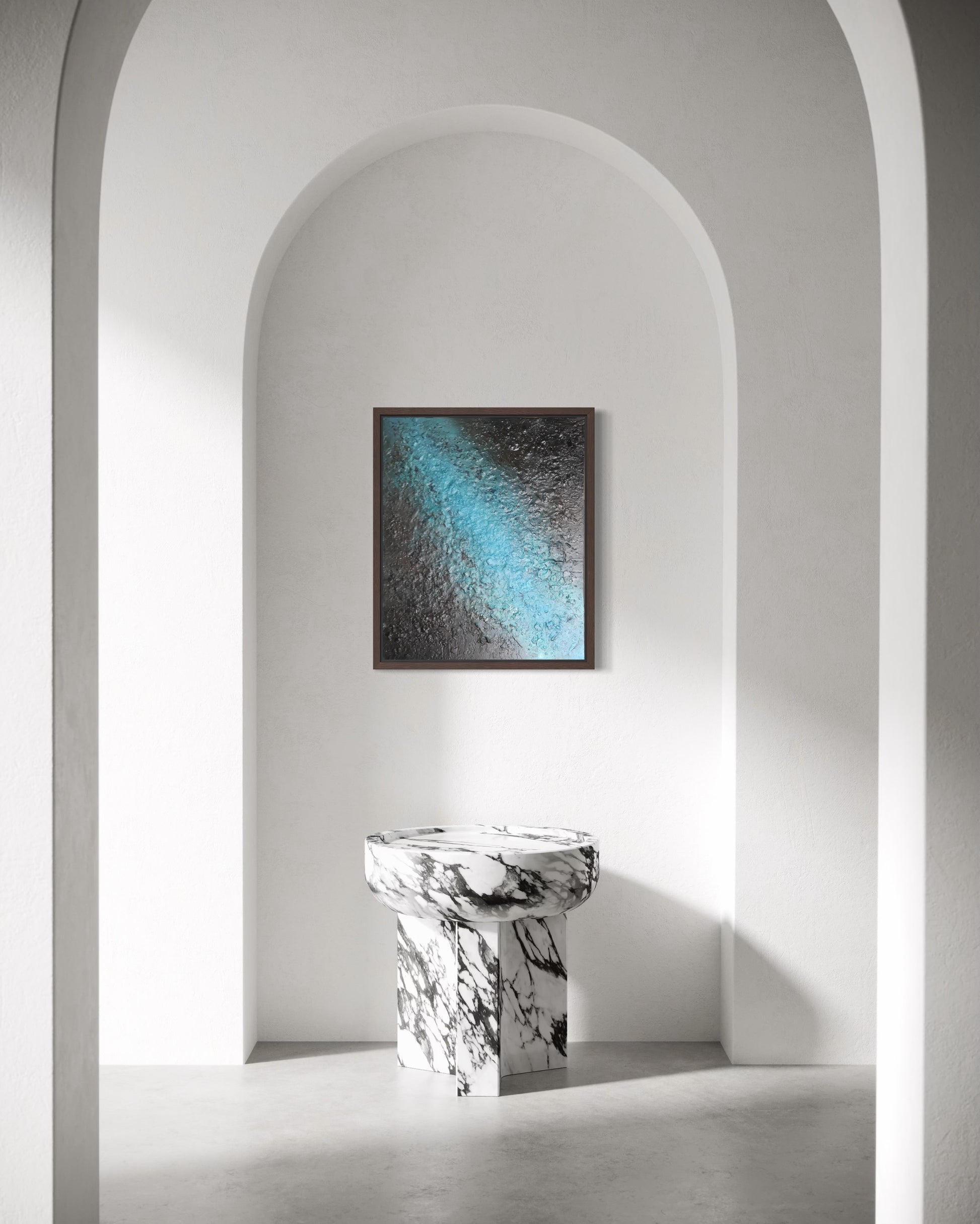 Après la traversée est une toile qui parle de ce moment précis où la clarté arrive, non pas par facilité, mais après avoir traversé la matière, la résistance, le réel.